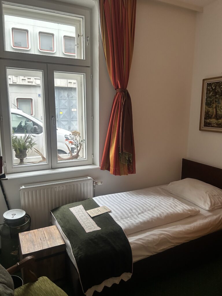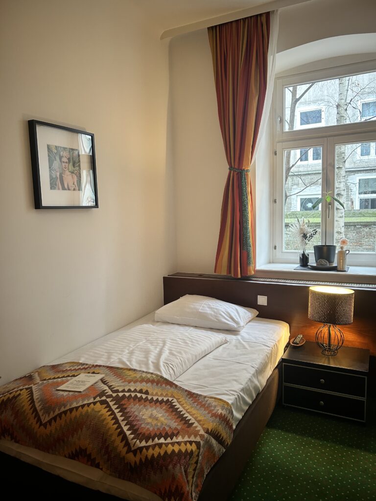 • Die Einzelzimmer sind zur ruhigen Hackengasse gerichtet und kompakt eingerichtet.