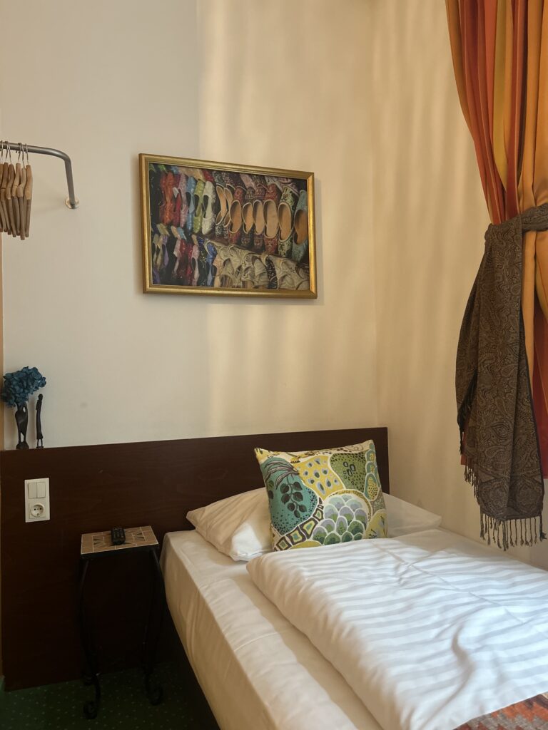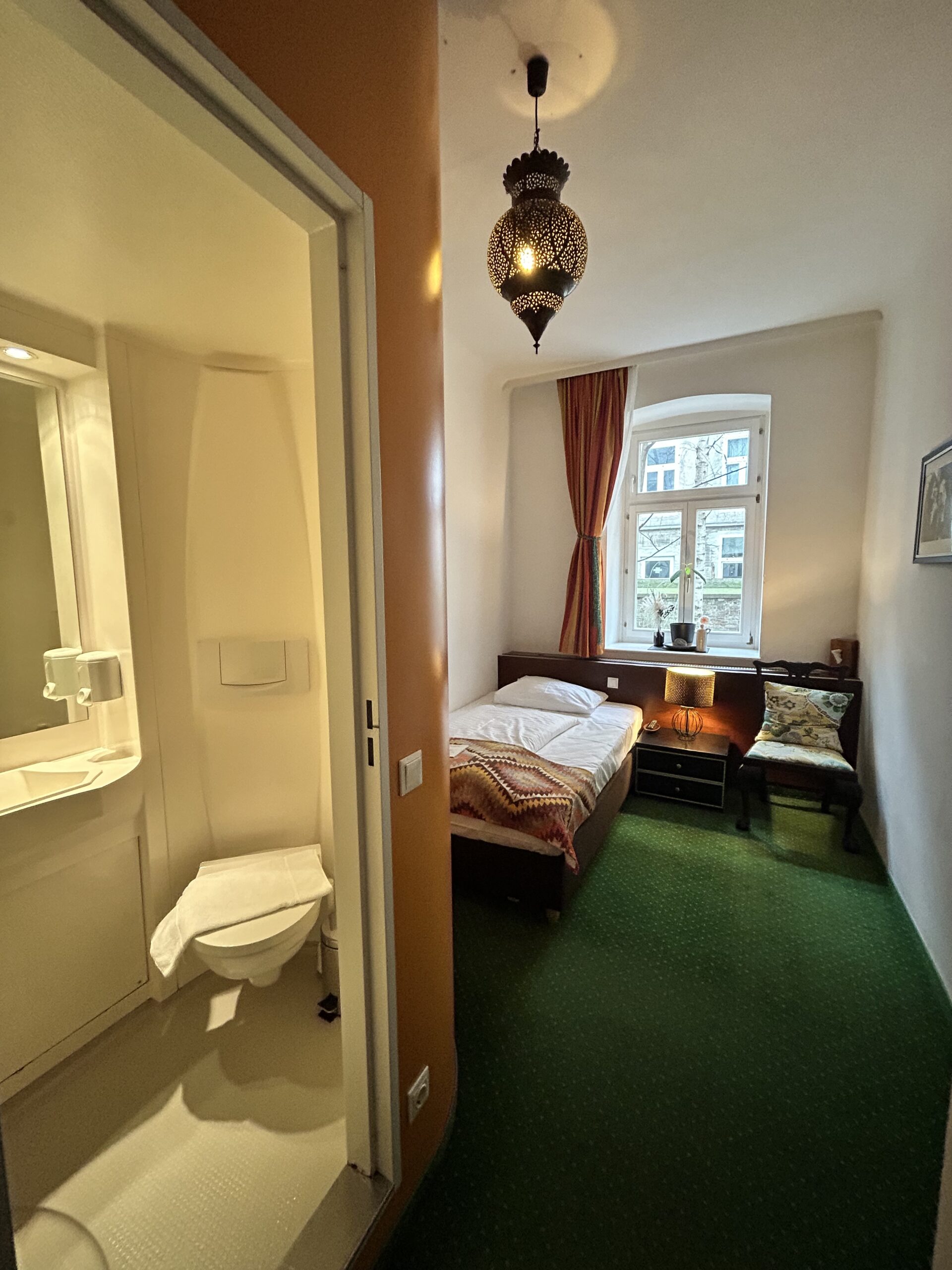 • Ein echtes Super-Budget-Zimmer mit einer Kleiderstange statt einem Kasten und einem gemütlichen Bett für einen erholsamen Schlaf.